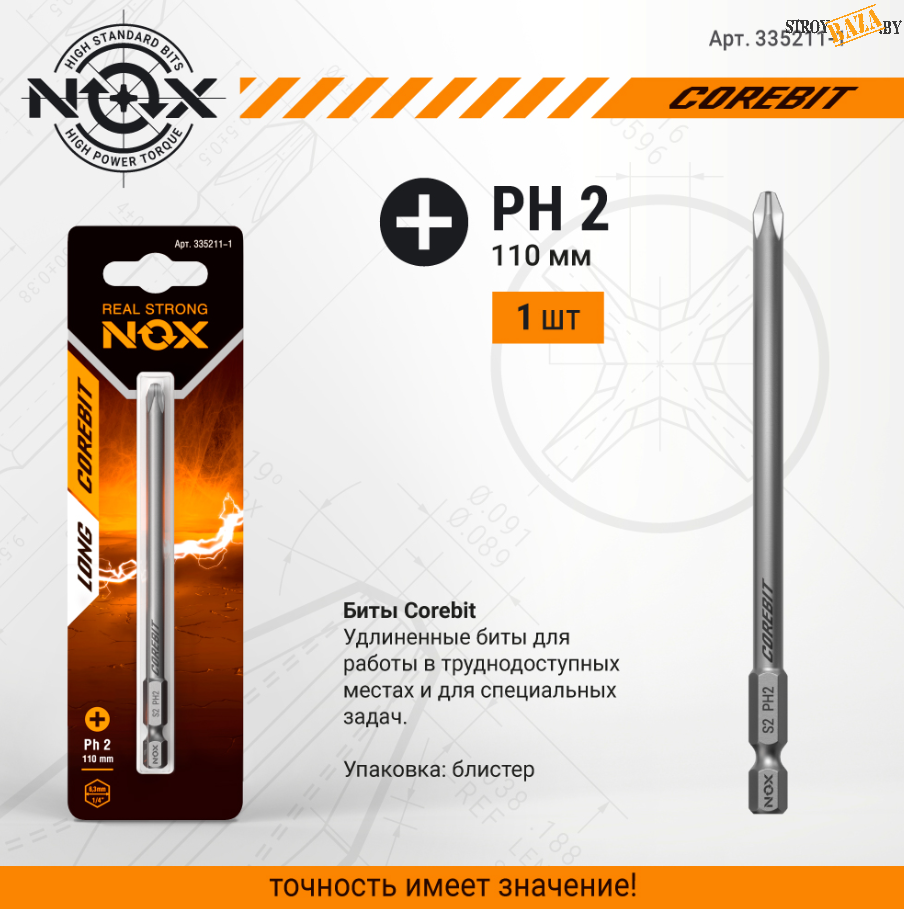 Бита E 6,3 ph2-110, 1 шт/уп на карте "NOX COREBIT"