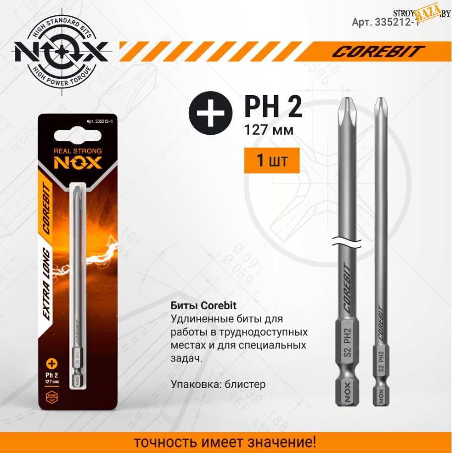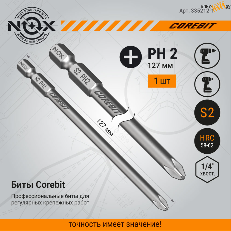 Бита E 6,3 ph2-127, 1 шт/уп на карте "NOX COREBIT"