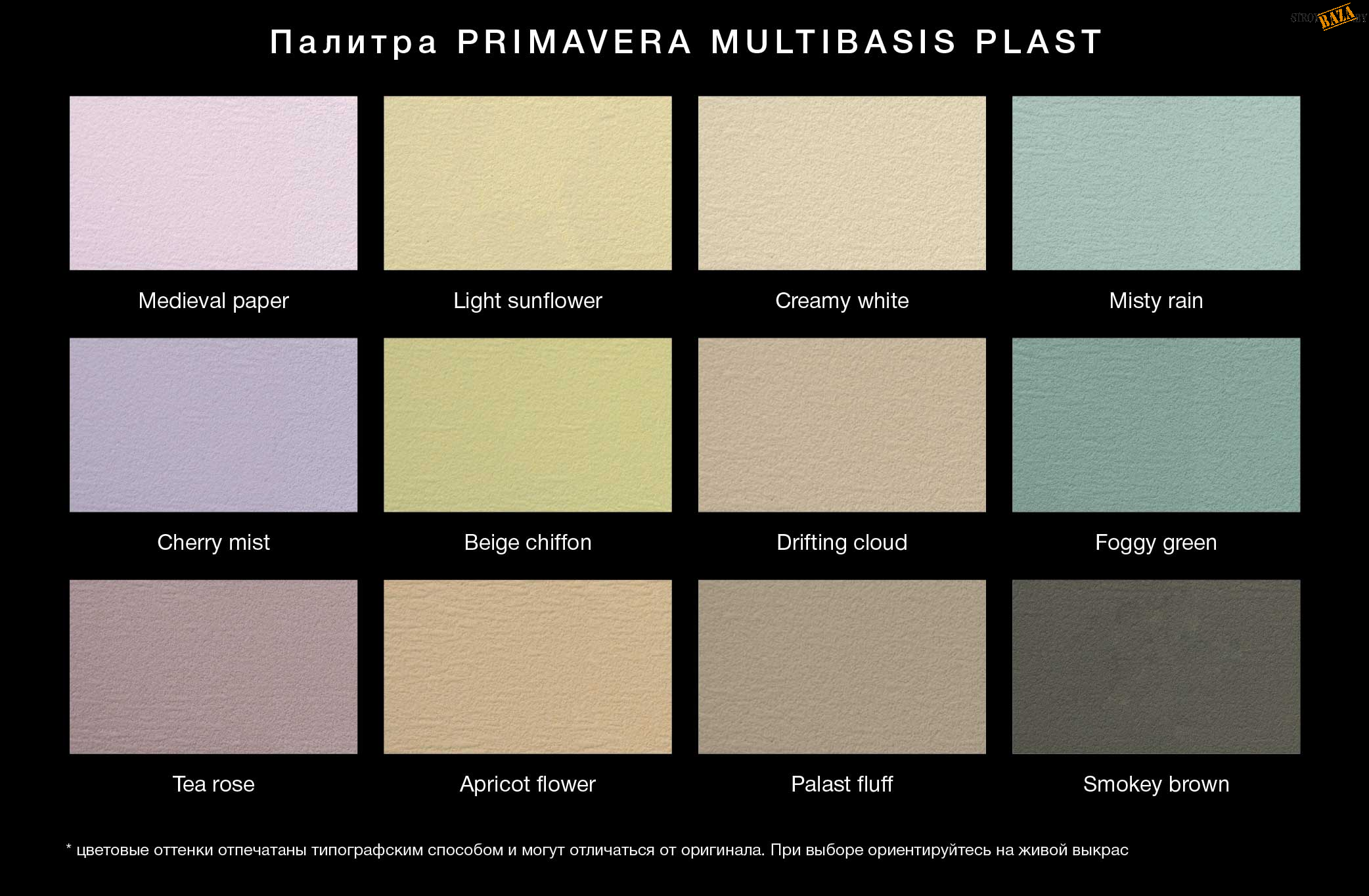 Подготовка основания: Поверхность должна быть чистой, прочной. Обязательна обработка грунтовкой PRIMAVERA FONDO или FATTURA для улучшения адгезии.