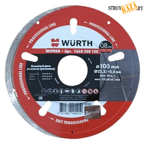 Алмазный диск по плитке 1A1R WURTH WCPR08 d100х22,2х0,8х5мм