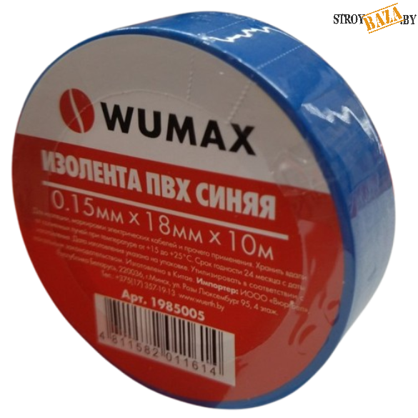 Изолента синяя 18мм х 0,15 х 10м, WUMAX