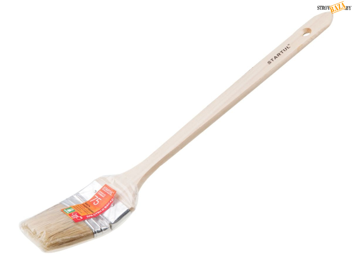 Кисть радиаторная для выполнения различных внутренних и внешних малярных работ в труднодоступных местах. Используется со всеми типами лакокрасочных материалов (ЛКМ), применяются преимущественно при окрашивании лакокрасочными материалами на масляной основе и густыми лаками, олифой и эмалями.