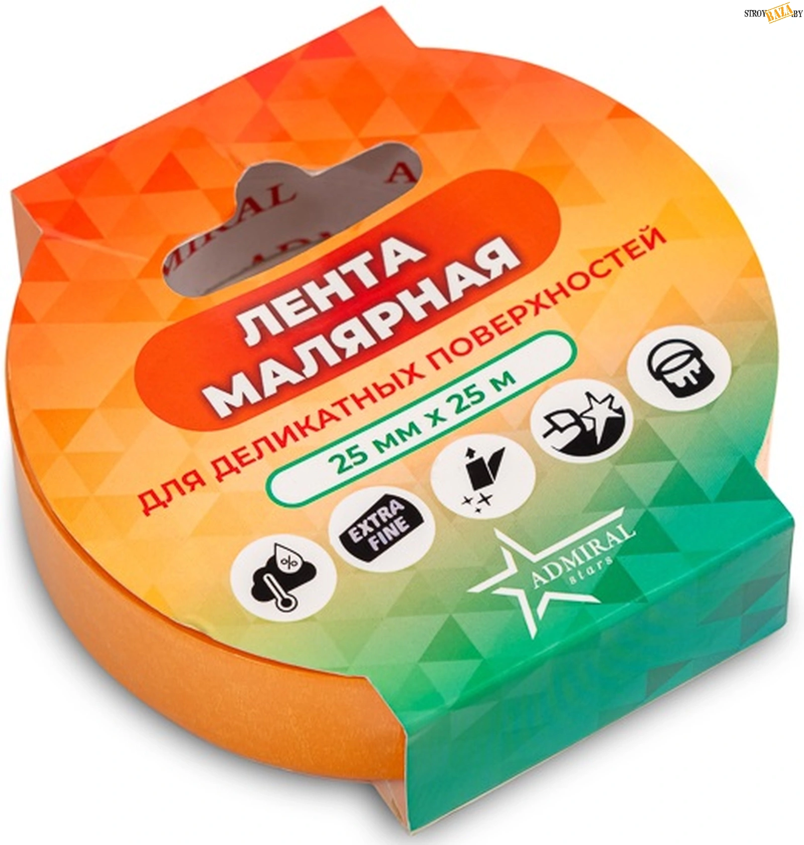 Лента малярная ДЛЯ ДЕЛИКАТНЫХ ПОВЕРХНОСТЕЙ 25мм*25м ADMIRAL