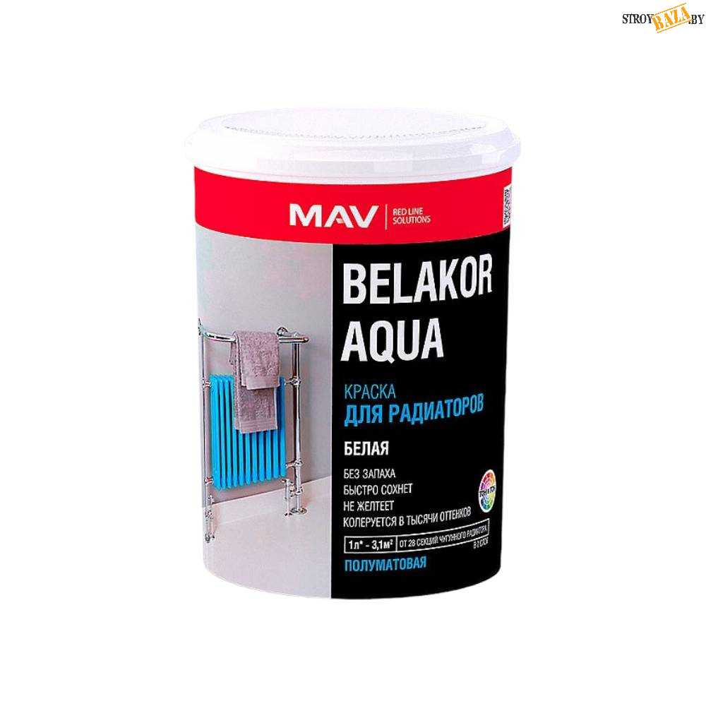 Краска BELAKOR AQUA для радиаторов белая п/мат 1 л (1,1 кг)