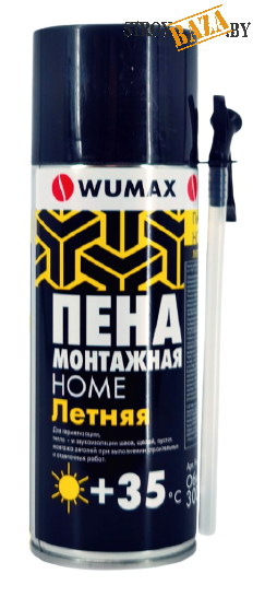 Артикул: 145022(0)Пена монтажная Home летняя, 300 мл., WumaxПена монтажная HOME lite летняя Арт. 189200251