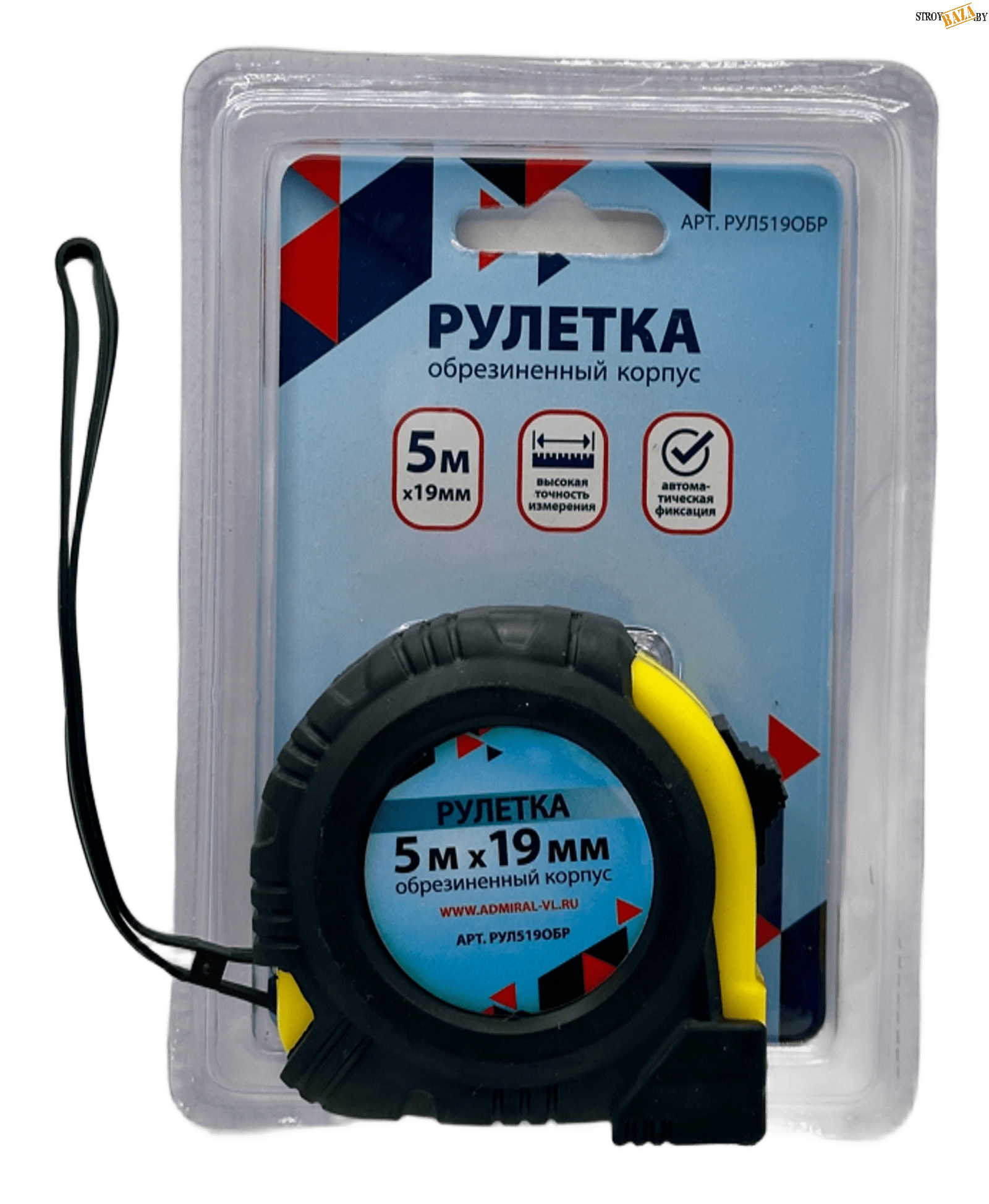 Рулетка 5м*19мм обрезин корпус автостоп, ADMIRAL
