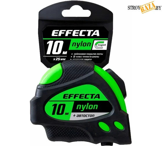 Рулетка Effecta Fort 10м/25 мм, магнит, автостоп, лента -2стор шкала-