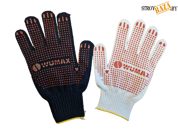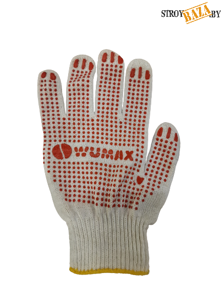Перчатки трикотаж. х/б, ПВХ, 5 нитей, 10 класс, 150 текс, белые, WUMAX