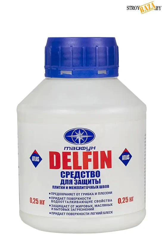 Тайфун-Мастер DELFIN. Защита плитки и межплиточных швов 0,25кгЗащищает от обычных бытовых загрязнений – от масел, жиров, кофе, чая, воды.