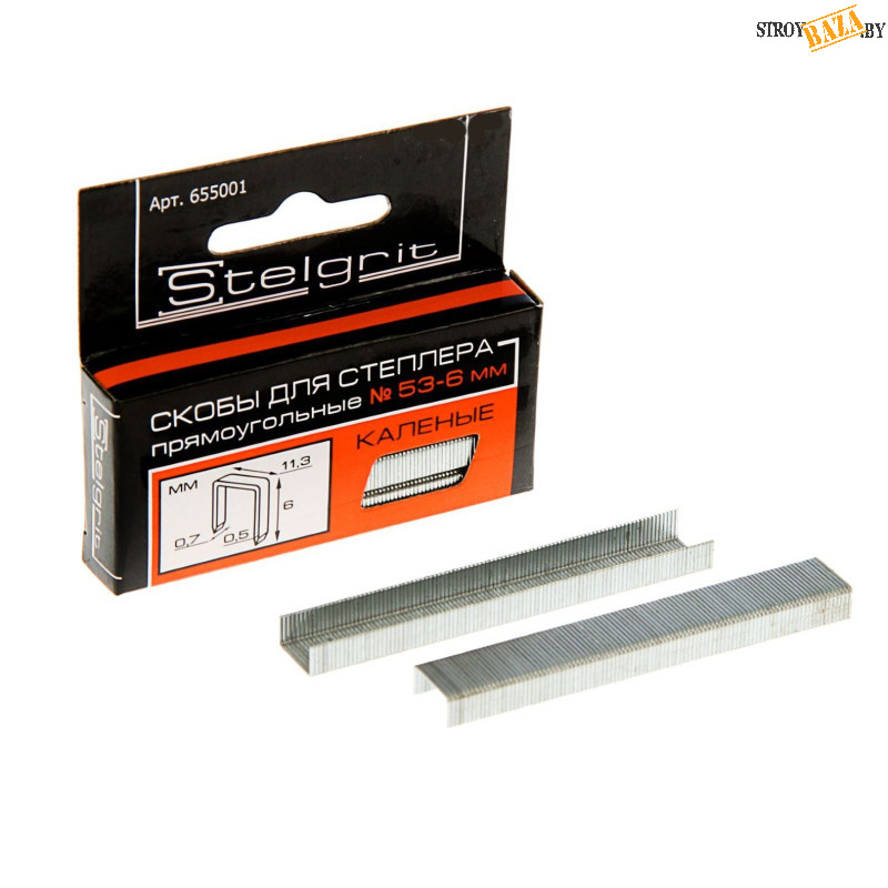 Скобы для мебельного степлера каленые 6x0,7 мм 1000 шт./уп. "Stelgrit"