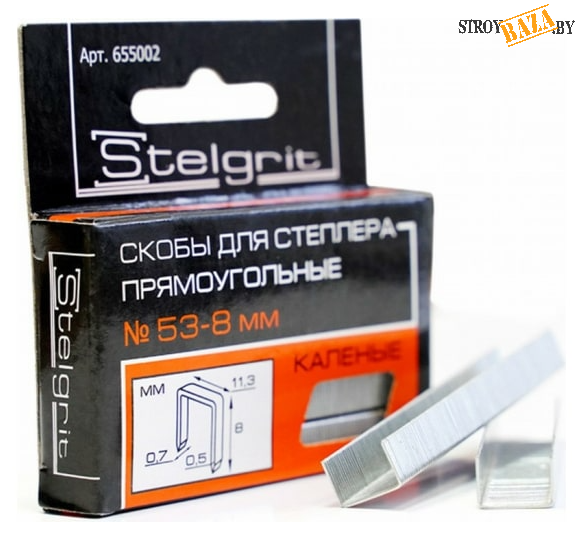 Скобы для мебельного степлера каленые 8x0,7 мм 1000 шт./уп. "Stelgrit"